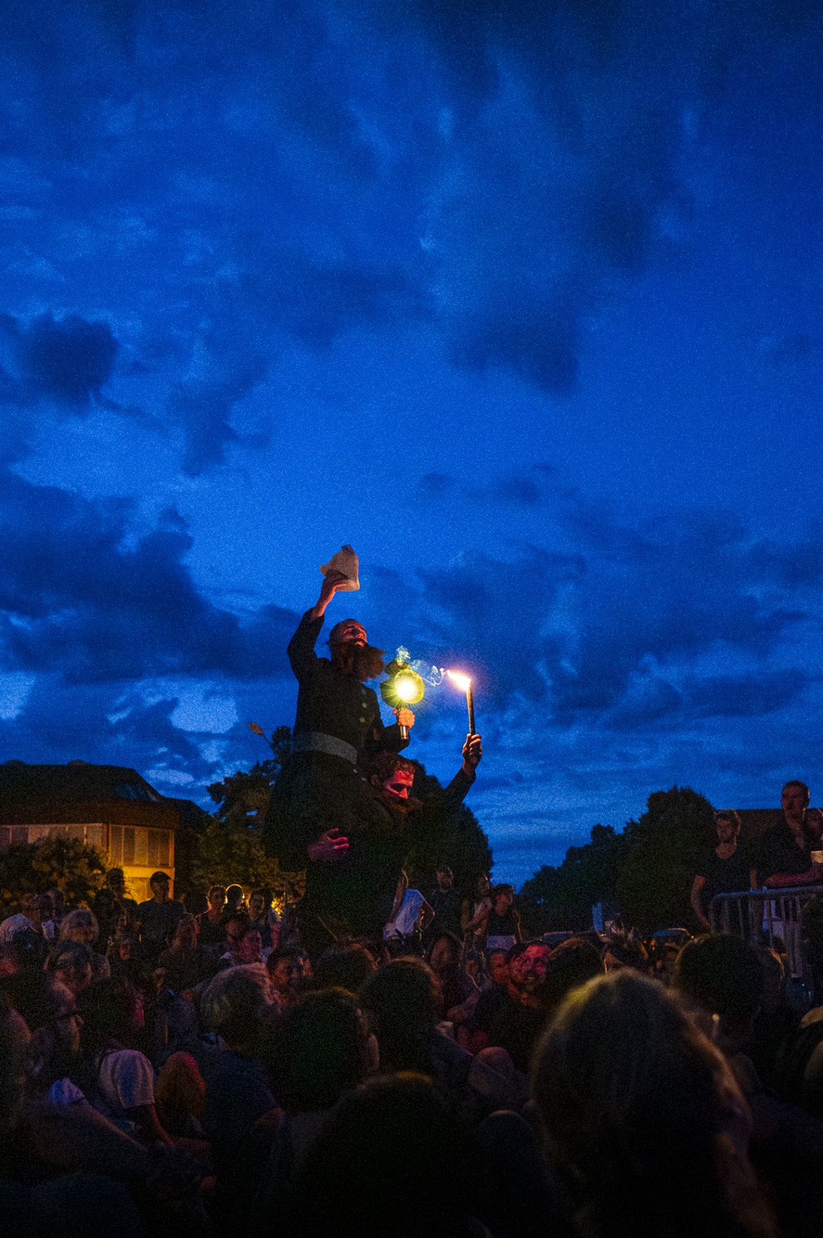 Du défi à la berceuse, du rituel au brasier, la confrérie nous invite à nous poser les questions qui fâchent avec humour et tendresse, et à venir brûler nos micro-peurounettes, nos peurs inavouables, comme nos grandes terreurs collectives sur la place du village.