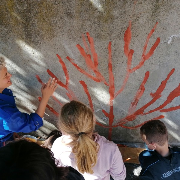 - 1 atelier arts plastiques (réalisation d'une fresque collective dans la cour) - classe Ulis école élémentaire St Amarin